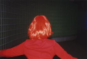 multifluorescente, MUJER ROJA se levanta como una diva de Hollywood..... corre y pierde su zapato rojo.....